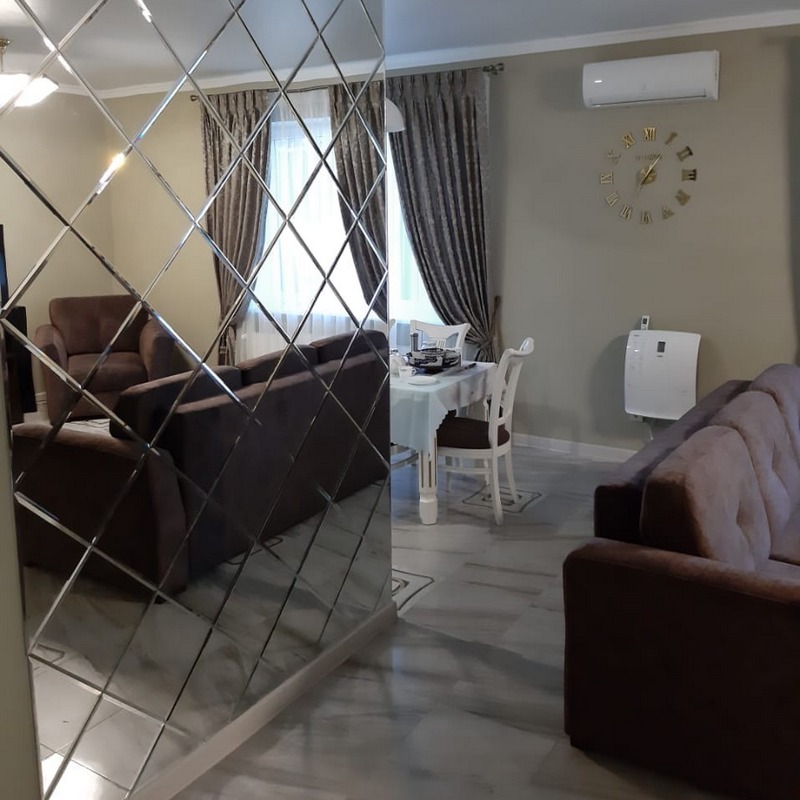 Мы много раз говорили о том, что зеркальное панно выполняет функцию расширения помещения, но в данный случай особенный. Здесь зеркало выполняет сразу несколько функций, где увеличение помещения вовсе не в приоритете.